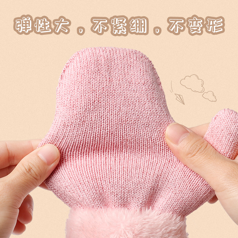 材质: 仿兔毛、睛纶、涤纶 颜色: 蓝色、粉色 产品重量: 129G 尺寸:适用3-6岁均码